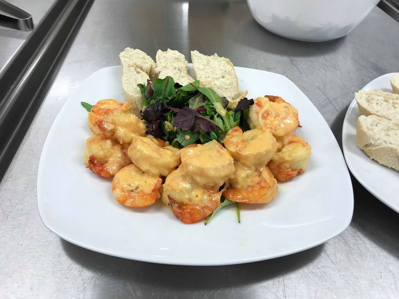 Auf der Speisekarte standen dann frische und gratinierte Austern, spanische Paella sowie Garnelen, Tintenfisch, Krebsfleisch, Muscheln jeweils am Spieß, im Cocktail oder am Salat.