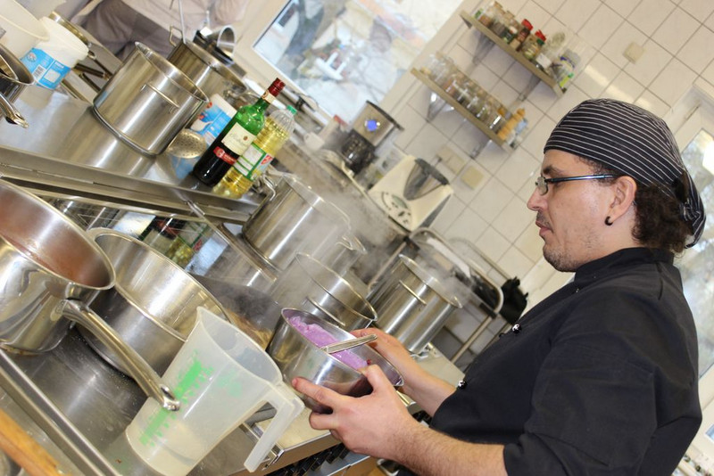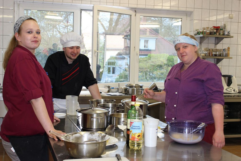 An den Herden standen dabei die Köche des 3. Ausbildungsjahres (KÖ 15). Sie hatten sich zuvor ein 3-Gang-Menü zu einem Thema erarbeitet, die Warenanforderung erstellt, die Menükarte geschrieben usw.