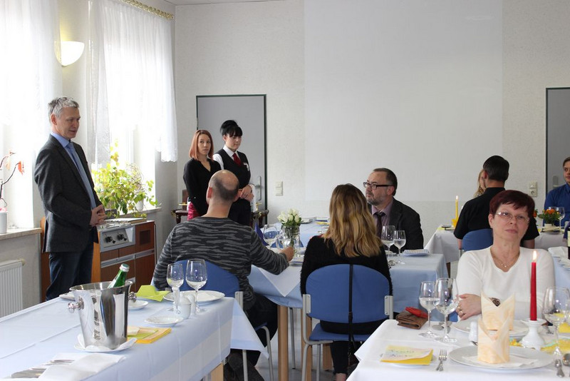 Am 17. April 2018 begrüßte der Schulleiter Herr Loewens Vertreter der Ausbildungsbetriebe, der IHK, des Landratsamtes, des Fördervereins und der Lehrerschaft zum traditionellen Projekt des Menükochens und des Menüservice.