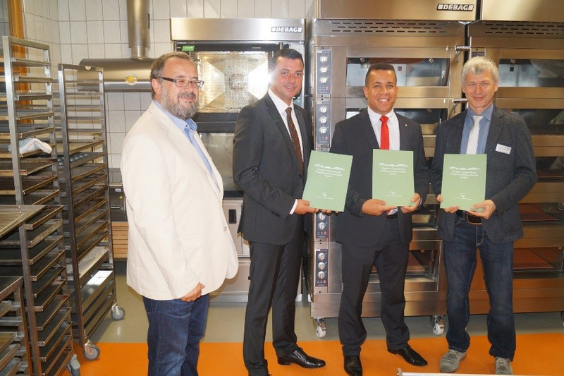 Am 15. August 2016 war es soweit. Der Abschluss einer Vereinbarung zur Kooperation zwischen der DEBAG Deutsche Backofenbau GmbH Bautzen und dem BSZ für Ernährung, verbunden mit der Übergabe neuester Backtechnik zur Nutzung durch das BSZ konnte besiegelt werden. Konkret wurden der Schule zwei Etagenbacköfen, ein programmierbarer selbstreinigender Umluftofen und eine Gäranlage übergeben. Damit wird unser Standort als Kompetenzzentrum für die berufliche Bildung im Bäckerhandwerk gestärkt.