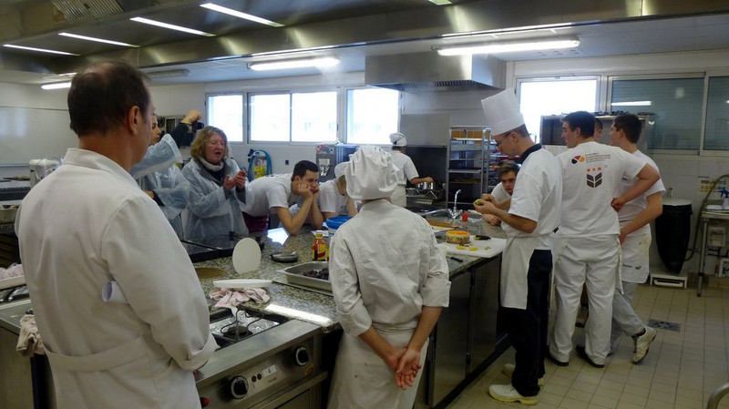 Nach dem leckeren Frühstück ging es zur Begrüßung. Nach der Gruppenbildung am Nachmittag unternahmen wir eine sehr interessante Stadtführung. Wir lernten die schöne Stadt kennen und bei einem Zwischenstopp in einer Bar unterhielten wir uns sehr gut mit den französischen Lehrlingen. Am Abend stellten uns die Franzosen viele leckere Spezialitäten aus ihrer Region vor.