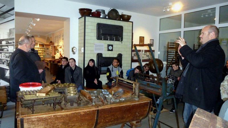 Am Mittwoch ging es schon sehr zeitig mit dem Backenlos. Diesmal stellten wir Brötchen, Pfannkuchen und weitere Snacks her. Später fuhren wir mit dem Zug nach Pulsnitz. Dort besuchten wir 2 Pfefferküchlereien und danach das Pfefferkuchenmuseum. Ein Mitarbeiter erklärte uns die frühere Herstellung von Pfefferkuchen. Zum Abendbrot gab es dann, die von uns am Vormittag hergestellten Köstlichkeiten.