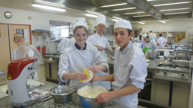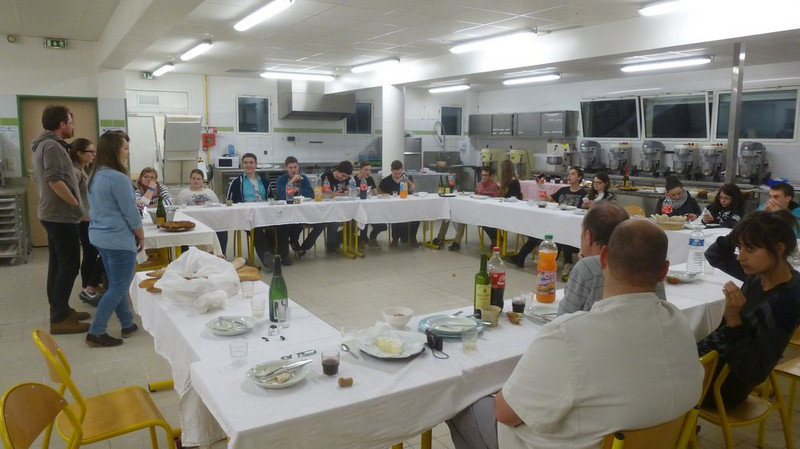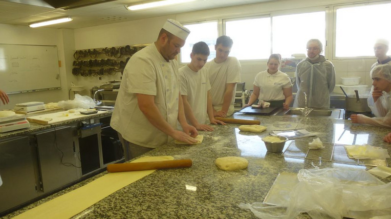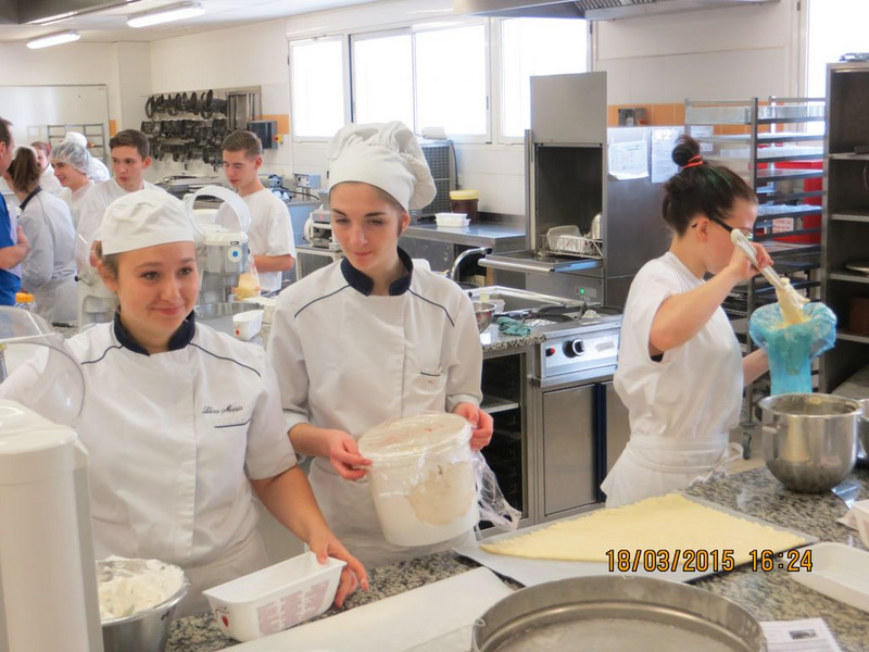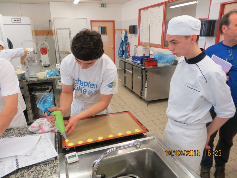 TAG: 7:30 Uhr Frühstück mit anschließender Sprachanimation. Mittagessen mit ausgedehnter Mittagspause (2 Stunden sind üblich in Frankreich). Am Nachmittag dann in der Backstube Baguettes, Macarons, Tarten und Schinken- und Bier- Brotteige vorbereitet. Abendbrot gegessen und dann den Abend ausklingen lassen.