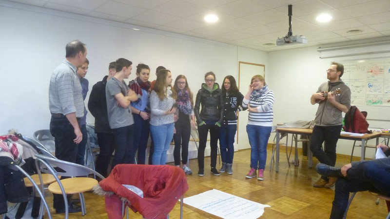 TAG: 9:00 Uhr Frühstück mit den Franzosen, Sprachanimation und Stadtrally mit Zusatzaufgabe „Ei kochen lassen“. Spezialitätenabend in der Backstube der Franzosen. Mit gut gefülltem Bauch dann wieder ins Bett gegangen.