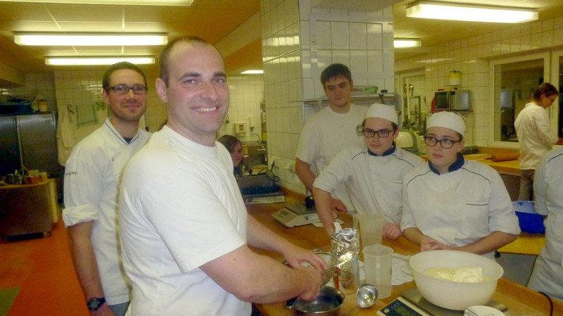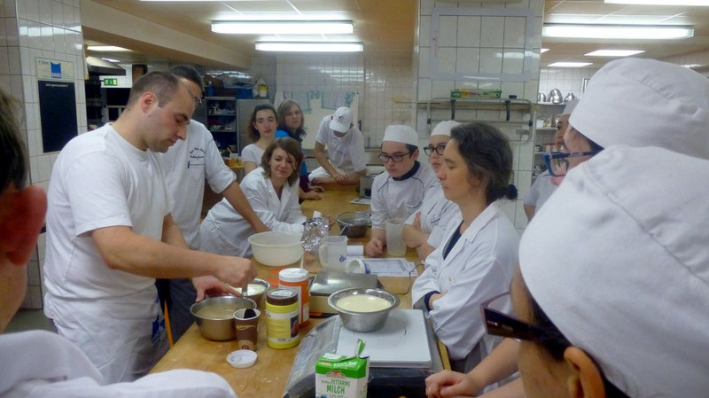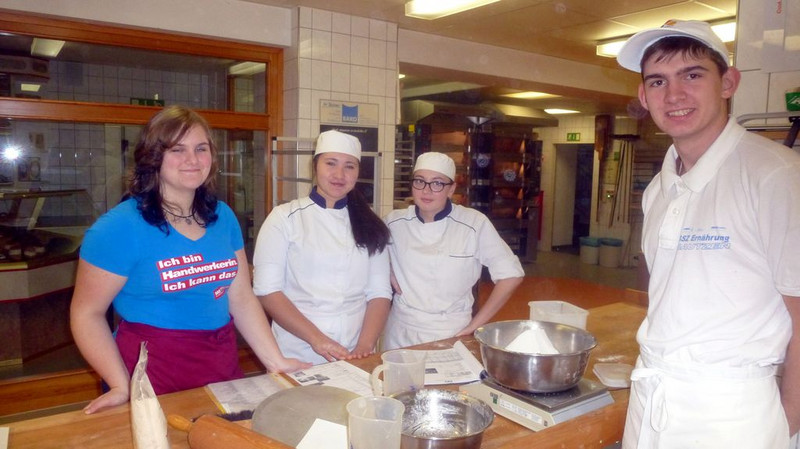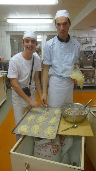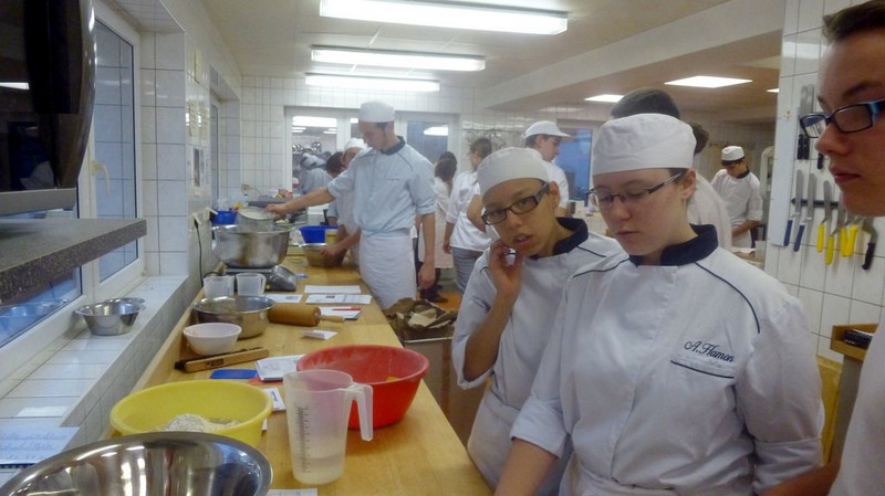 Am Mittwochvormittag haben wir ein bisschen Französisch gelernt, anhand von Spielen (Wortsammlung, Porträt, Speed dating). Die waren ganz witzig. Am Nachmittag waren wir in der Backstube und haben Brot, Stollen und Kuchen zusammen mit den Franzosen gebacken.