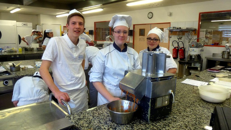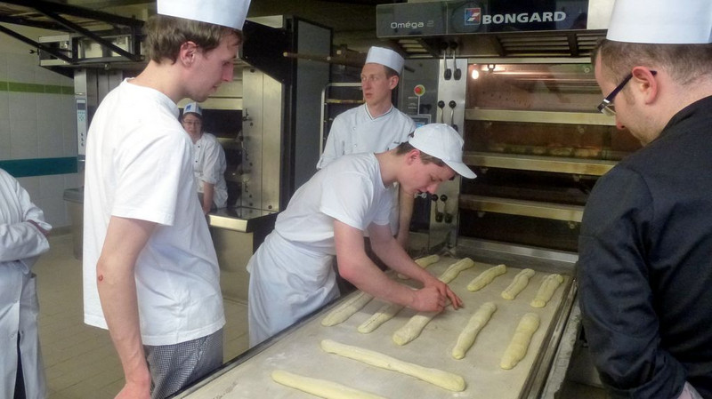 Aus dem Beruflichen Schulzentrum für Ernährung und Hauswirtschaft in Bautzen fuhren 9 Bäckerlehrlinge und 2 Betreuer vom 14.03. bis 19.03.16 in die Partnerschule nach Laval in Frankreich. Bei diesem Gegenbesuch sollten die Bäckerlehrlinge typisch französische Backwaren und deren Herstellung kennenlernen. Der Schwerpunkt lag dabei auf der handwerklichen Herstellung von Backwaren. Die praktischen Arbeiten fanden in den Fachkabinetten der französische Schule Lycée Robert Buron in Laval statt.