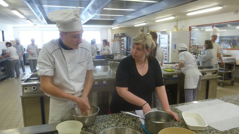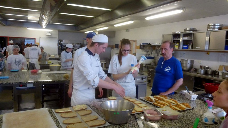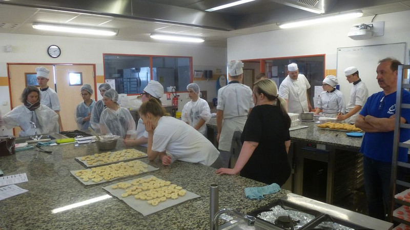Der dritte Tag begann mit dem Frühstück in der Kantine. Darauf folgte eine kurze Sprachanimation. Danach fuhren wir mit dem Bus zur Besichtigung der Firma BRIDOR. Wieder in der Schule angekommen, aßen wir zu Mittag. Nach dem Essen ging es weiter mit der Sprachanimation in Vorbereitung auf das anschließende Backen. Der Rest des Abends stand uns zur freien Verfügung. Also gingen wir zum nahegelegenen Fußballplatz, spielten Fußball und stießen auf die schöne Zeit an.