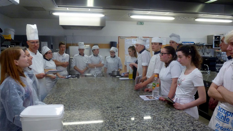 Am vorletzten Tag frühstückten wir in der Kantine. Bis zum Mittagessen verbrachten wir die Zeit mit Sprachanimationen. Danach ging das gemeinsame Backen in die 2te Runde und im Anschluss aßen wir natürlich unser selbstgemachtes Essen in gemütlicher Runde
