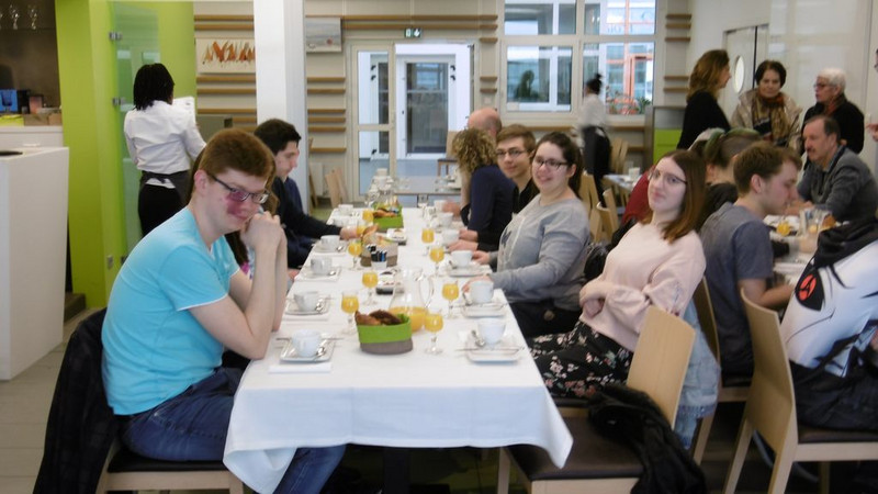 Am nächsten Morgen wurde für uns ein traditionelles Frühstück mit Baguettes, Croissants und anderen Plundergebäcken zubereitet. Den Vormittag verbrachten wir damit verschiedene Spiele zu spielen und uns wieder gegenseitig kennen zu lernen. Zu Mittag aßen wir in der Kantine in welcher wir generell unsere Mahlzeiten einnahmen. Am Nachmittag erkundeten wir in gemischten Gruppen, mithilfe von Aufgaben, die Stadt. Anschließend stellten wir unsere Ergebnisse, wie schon in Bautzen, in einem kleinen Vortrag vor. Für das Abendbrot hatten die französischen Schüler traditionelle Gerichte vorbereitet.