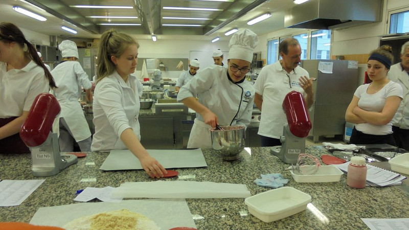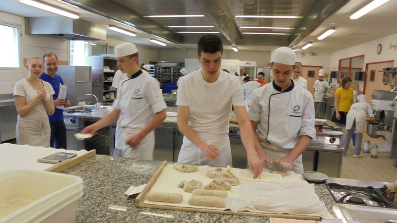 Vom 1. April bis zum 6. April 2019 besuchten wir im Rahmen des Deutsch-Französischen-Bäckerseminars zum neunten Mal die Berufsschule in Laval, Frankreich. Neben Schulbesichtigung, Stadtrallye und Spezialitätenabend lernten wir viel in der französischen Sprache und über Land und Leute. Das Resultat der zweitägigen Arbeit in der Backstube war französisches Gebäck, wie Macarons, Trüffel, Baguettes, Croissants, Snacks etc. Die ausgiebige Verkostung dauerte bis tief in die Nacht. Des Weiteren besichtigten wir die Großbäckerei Bridor. Als Abschluss unseres Austauschs waren wir Freitagabend bowlen. Wir erreichten Bautzen am 7. April um 1.45 Uhr nach 20 Stunden und 1500 km.