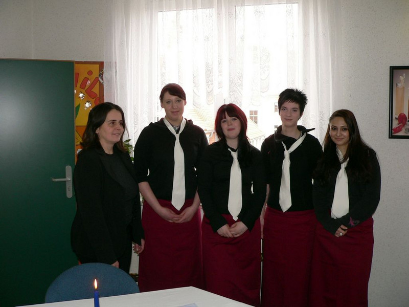 Am Donnerstag, den 10.03.2011 besuchten uns (Lehrlinge aus den Klassen Bä 10 und Kö 09a) 6 tschechische Konditorlehrlinge mit ihren Lehrausbildern aus unserer Partnerschule von Ceska Lipa. Sie kamen gegen 9.00 Uhr mit einem kleinen Bus auf unseren Schulhof gerollt. Sie wünschten sich unbedingt das Thema Vogelhochzeit.