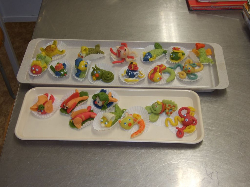 Während dessen erklärten uns der Direktor und eine Lehrerin unter welchem Thema, nämlich „Fisch in der Konditorei“, der Tag stand.