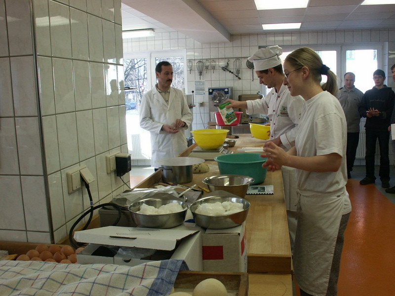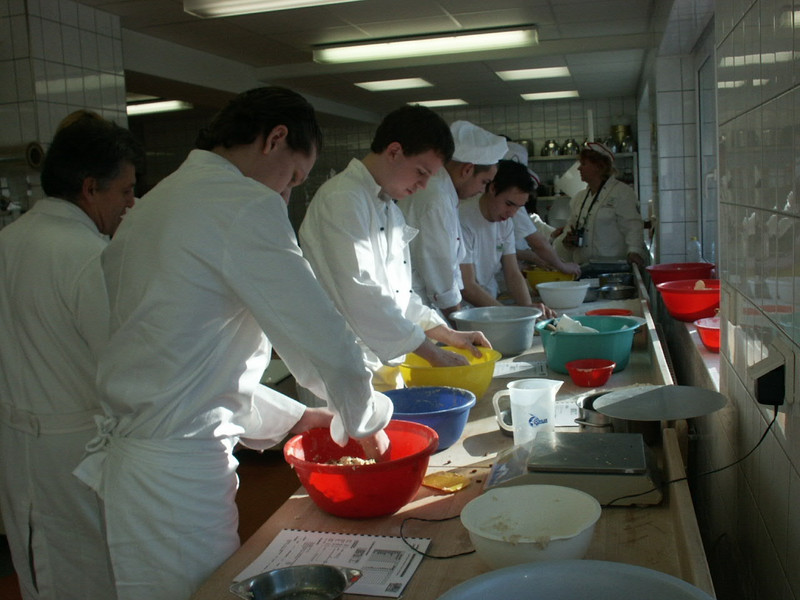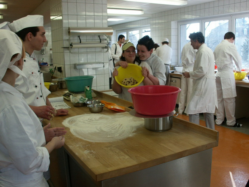 Die Tschechen, das waren je drei Koch- und drei Bäckerlehrlinge. Die Zusammensetzung bei uns war die Gleiche. Dazu kamen noch die Lehrer. Das gemeinsame Arbeiten sollte dieses Mal intensiver gestaltet werden. Deshalb wurde ordentlich gemischt. Paarweise wurden ein Tscheche und ein Deutscher und gleichzeitig Bäcker und Koch zusammengestellt. Jeder sollte seine Erfahrungen und Sprachkenntnisse (vorhanden oder nicht vorhanden) mit einbringen.