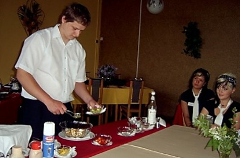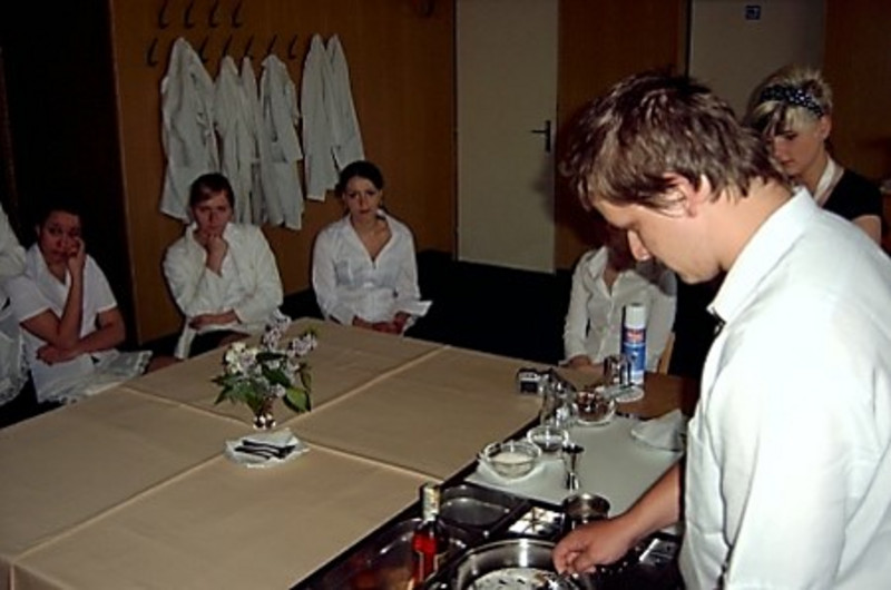 Für die Refa`s und Hofa`s hatten die Servicekräfte in der Cafeteria des Hauses drei Arbeitsplätze vorbereitet. Es wurden Kaffee und Süßspeisen flambiert, Obst filiert und Obstsalate zubereitet. Die Arbeitsabläufe wurden nach tschechischer und deutscher Weise demonstriert. Großes Interesse fand das Falten verschiedener Serviettenformen bei unseren Gastgebern. Abschließend wurden noch 2 Kaffee-spezialitäten zubereitet und das Tagesgeschehen fand seinen Ausklang.