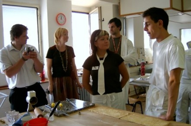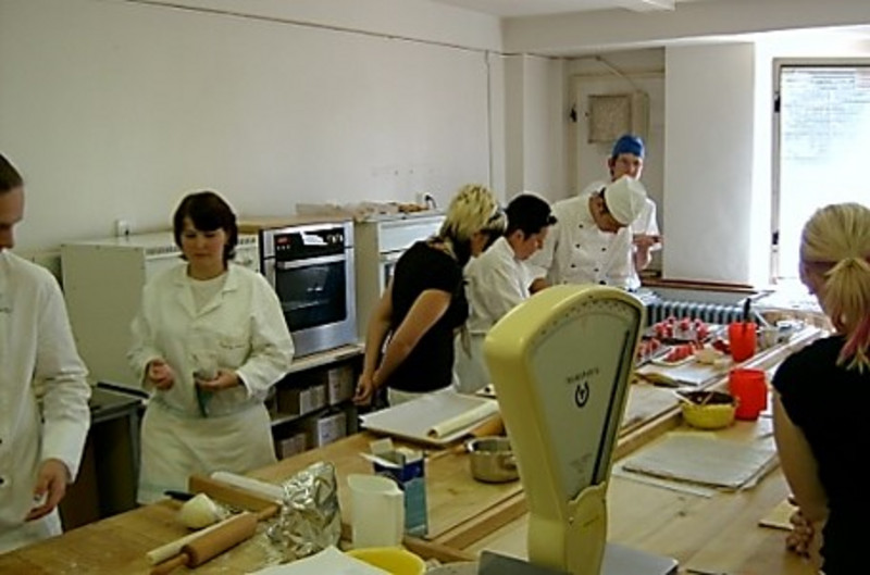 Wir wurden wieder sehr herzlich begrüßt und nach einer „kleinen“ Stärkung im Restaurant hieß es: Lernt voneinander in den Fachbereichen! So kreierten die Bäcker und Köche kleine Wunderwerke: Bisquit-rollen mit verschiedenen Füllungen, Marzipanrosen, Ornamente aus Schokolade. Die Fachlehrer für Konditoren und Bäcker Frau Mezeiova, Frau Cholevova und Herr Ing. Svoboda und tschechische Auszubildende unterstützen mit Rat und Tat.