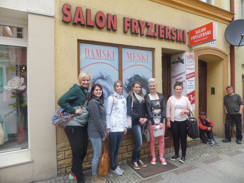 Anschließend haben wir die Schule gemeinsam besichtigt. Da die Schüler nur theoretischen Unterricht haben, gibt es kaum Kabinette. Die praktische Ausbildung erfolgt nur in den Praktikumsbetrieben, die sie uns stolz gezeigt haben. Wir durften zuschauen, wie sich die Auszubildenden auf die praktische Zwischenprüfung vorbereitet haben. Dabei haben wir uns im Gespräch über die Lehrzeit ausgetauscht.