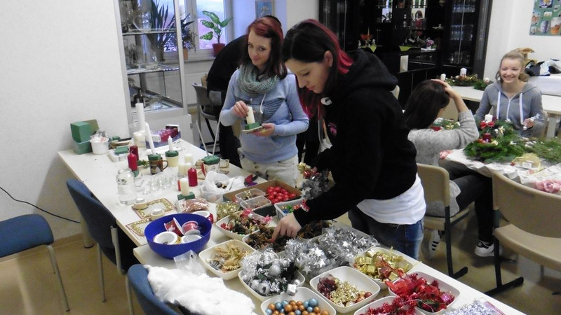 Die Kaufleute im Einzelhandel bastelten währenddessen Weihnachtsgestecke für alle teilnehmenden Schüler. Die Auszubildenden bewiesen dabei sehr viel Kreativität.