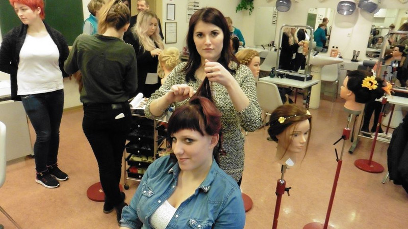 Die Schüler der Berufsgruppe Friseure gingen in das Praxiskabinett und beschäftigten sich mit Freude und Arbeitslust mit Flechtfrisuren und der Dauerwelle.