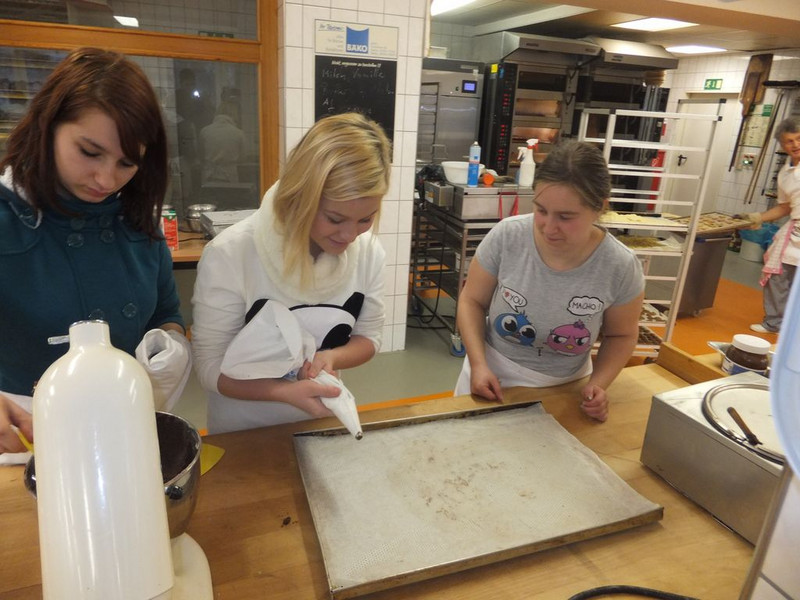 Die polnischen Schüler besuchten zum ersten Mal unsere Schule am 05.12.2013. Nach einem gemeinsamen Frühstück arbeiteten wir abwechselnd in Gruppen. Wir haben entweder Plätzchen gebacken in unserer Backstube oder Weihnachtsschmuck gebastelt.