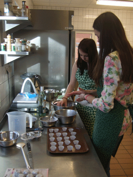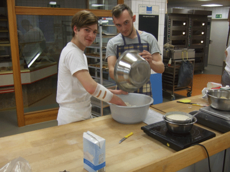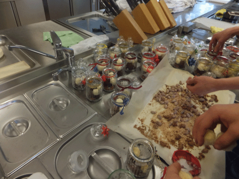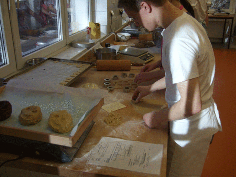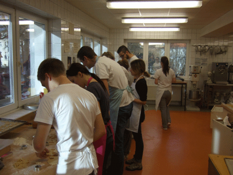 Nach dem gemeinsamen Frühstück ging eine Gruppe in die Backstube und die andere Gruppe in die Gastronomieküche. Sie haben Rezepte zur Pralinenherstellung ausprobiert und weihnachtliches Gebäck hergestellt.