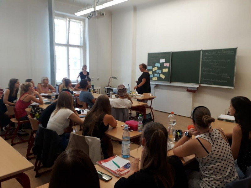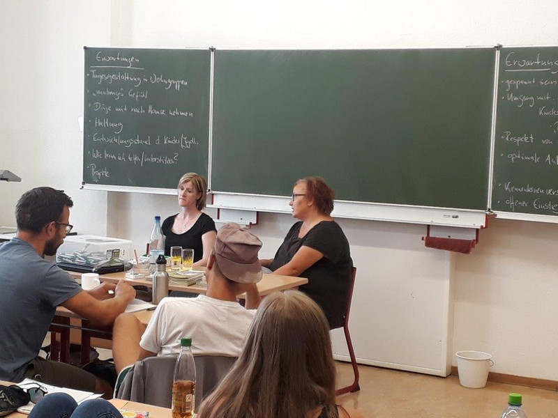 Am 16. und 17. 08.2018 besuchten zwei Mitarbeiterinnen des Kinderheims Machern unsere Erzieherklassen des 2. Ausbildungsjahres. Die Projektleiterin Frau Seifert und ihre Mitarbeiterin Frau Bock berichteten praxisnah von ihrer Arbeit und stellten ihre sozialpädagogische Einrichtung vor. Die Schülerinnen und Schüler stehen kurz vor dem zweiten Blockpraktikum in der stationären Kinder- und Jugendhilfe. Somit war ein praktischer Input sehr hilfreich, um brennende Fragen zu klären und auch bestehende Ängste abzubauen. Wir danken dem Kinderheim Machern für diese Unterstützung und freuen uns weiterhin über eine gute Zusammenarbeit.