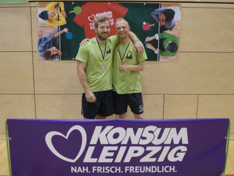Beim diesjährigen Tischtennis-Firmencup am 3.6.2018 in Leipzig traten Herr Conrad und Herr Hielscher zusammen als Repräsentanten der Henriette-Goldschmidt-Schule an, um sich am Ende eine Medaille in der Vereinskategorie zu erkämpfen. Unter insgesamt 130 am Doppelturnier teilnehmenden Teams knüpften sie zahlreiche Kontakte und verkörperten den Sportsgeist und die Fairness unserer traditionsreichen Bildungsinstitution.