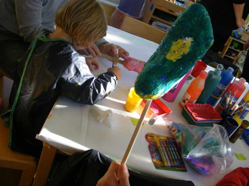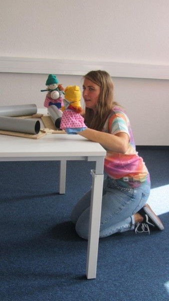 Dienstag gesellten sich auch die Podologen dazu und stellten mit den Kindern ihre eigenen Gipsfüße her. Zudem gestalteten sie eine Barfußstrecke, welche die Kinder durchlaufen konnten. Doch das war noch nicht alles. Danach bekamen die Kinder ein Puppentheater geboten, was wirklich jeden zum Lachen brachte. Die E16/2 präsentierte ihr Stück: „Räuberratte“, welches im Rahmen des LF5- Unterrichts im letzten Schuljahr entstand. Mittwoch legten die Schüler eine Pause ein und die Großeltern übernahmen. Am Oma- und Opatag besuchten sie ihre Enkel im Kindergarten und lasen ihnen spannende Geschichten vor.