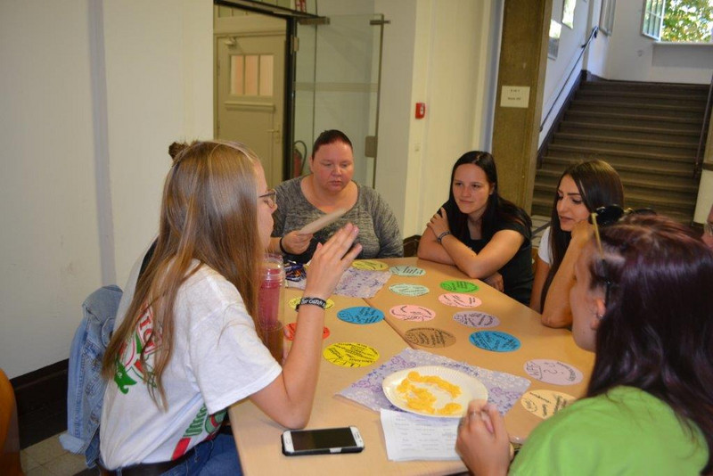 Am 14.08.2018 begrüßten wir, die E17/1 und E17/2, gemeinsam mit unseren Klassenlehrern Frau Kreißig und Herrn Brüske die neuen Erzieherklassen der Henriette-Goldschmidt-Schule Leipzig. Bereits im vergangenen Schuljahr bereiteten wir ein Programm für die neuen Schüler vor und überlegten uns, wie wir ihnen einen interessanten Einstieg in die Ausbildung ermöglichen können. Wir bauten verschiedene Stationen auf, welche sie bewältigen mussten. Bei einem Kennlernspiel tauschten wir zahlreiche Informationen aus und beim Tischtennis war es eine große Herausforderung, sich den Ball mit verschiedenen Haushaltsmaterialien zuzuspielen. Drei Schülerinnen der E17/1 zeigten, was sie bereits auf der Gitarre gelernt haben und beim gemeinsamen Singen entstand eine lockere Atmosphäre. Außerdem wurden die unterschiedlichen Lernfelder vorgestellt und die neuen Schüler und Schülerinnen konnten all ihre Fragen los werden. Die E17/2 bereitete ein gemeinsames Frühstück für die neuen Erzieherklassen vor, bei dem sie sich über ihre bisherigen Erfahrungen austauschen konnten und gute Tipps für die zukünftige Ausbildung an unserer Fachschule bekamen. Mit einer von uns selbst gebastelten Zuckertüte in der Hand, entstand am Ende des Tages ihr erstes gemeinsames Klassenfoto. Wir wünschen allen neuen Erzieherklassen einen guten Start ins neue Schuljahr!