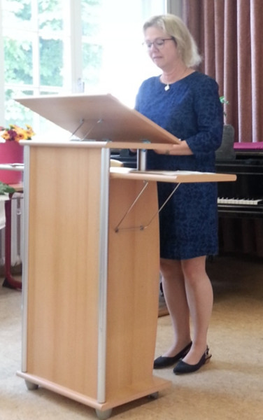 Frau Nitschke gestaltete gemeinsam mit zwei Erzieherklassen des 18-er Jahrgangs und einer 11. Klasse der Fachoberschule die Gedenkveranstaltung.