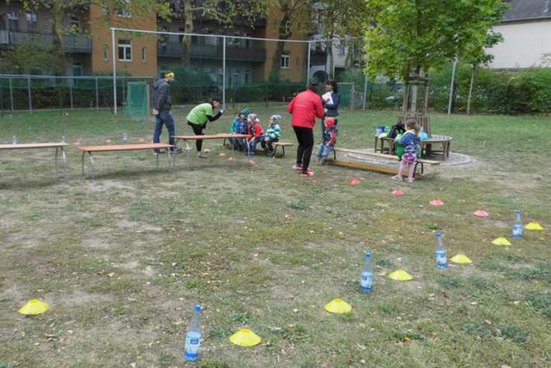 Höhepunkt der Festwoche war der Donnerstag. Unter dem Motto „Kleine Weltentdecker- auf den Spuren Friedrich Fröbels“ konnten die Kinder an verschiedenen Angeboten teilnehmen und aufregende Stunden erleben. Sie durften der Leo Lausemaus zuhören, mit Pappmeister bauen, Traumfänger basteln, der Gitarre lauschen und mitsingen, ihre Gipsfüße anmalen und vieles mehr. Zum Austoben gab es im Garten eine große Auswahl an Sportspielen und die Kinder hatten sogar die Möglichkeit sich an Slacklinestrecke auszuprobieren. Ein gelungener Tag für alle Beteiligten.