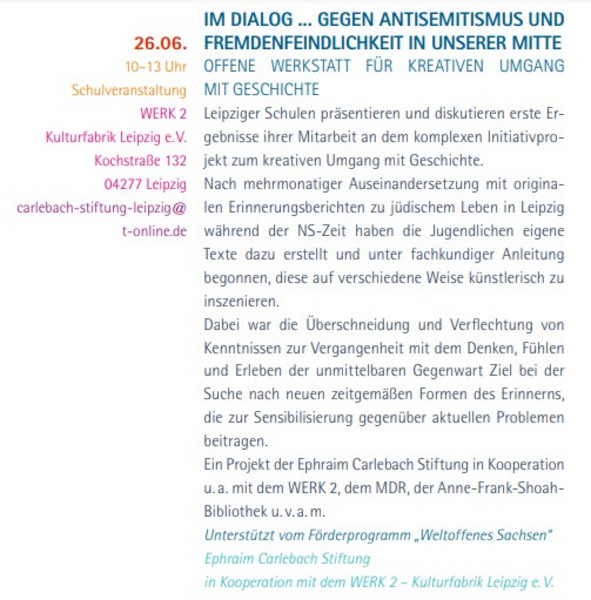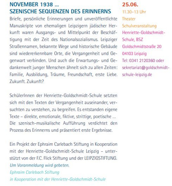 Teilnahme der Henriette-Goldschmidt-Schule an der Jüdischen Woche in Leipzig