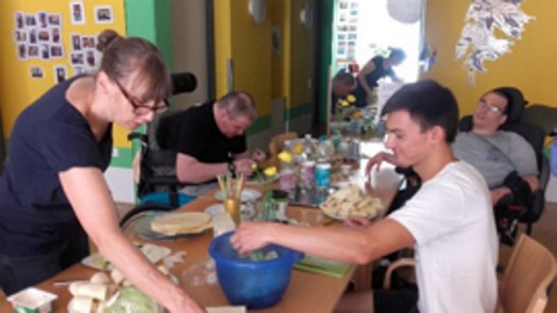 Fachschüler*innen der Heilerziehungspflege-Ausbildung helfen bei den Vorbereitungen eines Sommerfestes