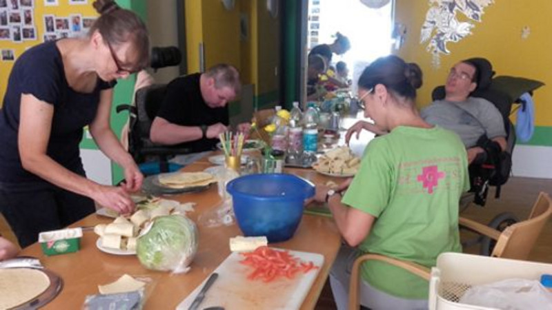 Am Freitag in der ersten Schulwoche war die Klasse des zweiten Ausbildungsjahres Heilerziehungspflege der Henriette-Goldschmidt-Schule zu Gast im „Prof. Peter Uibe-Haus“ der Humanitas. Eine Absolventin der Heilpädagogik im letzten Schuljahr fragte uns, ob wir die Vorbereitungen des Sommerfestes für die Bewohner*innen unterstützen würden. Sofort waren wir dabei und gespannt, was auf uns zukommen würde. Zuerst erhielten wir eine Führung durch das Haus, was eine Bewohnerin sehr interessant leitete. Anschließend wurden wir in Gruppen eingeteilt, um zum Teil gemeinsam mit den Bewohner*innen einige Köstlichkeiten für das am Abend geplante Sommerfest zuzubereiten. Neben einem regen Austausch mit den Bewohner*innen und Mitarbeitenden haben wir auch gute Tipps für Rezepte erhalten, die wir vielleicht einmal nachmachen. Im Anschluss fanden eine Reflexionsrunde und ein Austausch mit Herrn Endler, dem Leiter der Einrichtung, und allen Beteiligten statt. Wir haben unter anderem kritisch über den Fachkräftemangel in der Behindertenhilfe gesprochen und viel dazu gelernt, was beispielsweise rechtliche und finanzielle Grundlagen der Arbeit mit zum Teil schwerst-mehrfach behinderten Menschen betrifft. Gespannt blicken wir in die Zukunft und freuen uns auf weitere Kooperationen dieser Art. Herzlichen Dank an alle!
