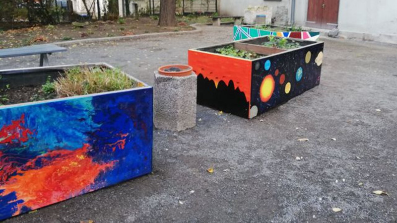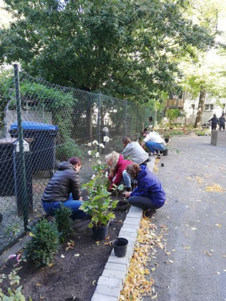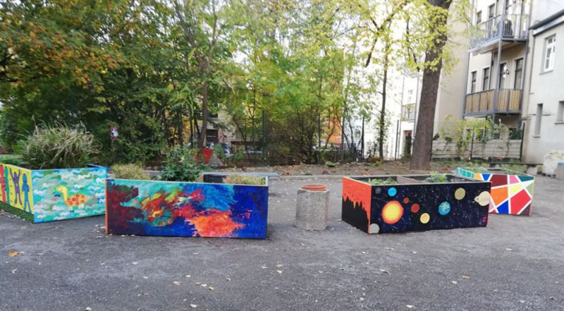Am 17.09.2019 folgte die Fortsetzung des Projekts „Grün macht Schule“ zur Verschönerung des Innenhofes. Die Klasse 12-2 unserer Fachoberschule bepflanzte unter Anleitung von Frau Dr. Schulze eifrig die Hochbeete mit Küchenkräutern und die Außenanlage mit verschiedensten Gewächsen und Blumen. Gleichzeitig arbeitete die Kunstgruppe der Klasse 12-2 mit Frau Walther fleißig weiter an der Verzierung der Holzplatten für die Hochbeete. Fortsetzung folgt!