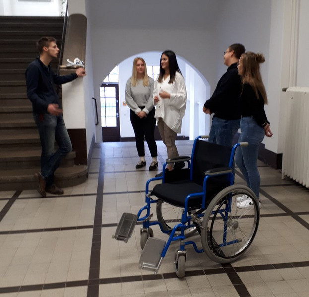 Die Klasse der Heilerziehungspfleger HEP 18 gab Anfang Dezember Schülern der Klassen 11-2 und 11-3 unserer Fachoberschule hilfreiche Tipps zu ihrem Start ins Pflegepraktikum. An verschiedenen Stationen bekamen sie einen Einblick in die Ganzkörperwaschung, Anregungen zum rückenschonenden Arbeiten im Bereich der Mobilisation, testeten selbst Rollstuhl und Patientenlifter als auch das Treppensteigen oder Lesen mit eingeschränktem Sehvermögen und erfuhren mehr über die Ausbildungsmöglichkeiten in der Heilerziehungspflege. Viele Fragen wurden beantwortet, eigene Erfahrungen einbezogen und so auch einige Bedenken genommen. Vielen Dank an die Schüler*innen der HEP18 für die interessanten 90 Minuten, die leider viel zu schnell um waren.