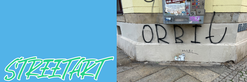 STREETART – Straßenkunst ist ein sehr umstrittenes Feld. Für die einen ist es Kunst im öffentlichen Raum. Für die anderen ist Verschandelung von Häusern und Gebäuden, Mauern und Wänden im öffentlichen Raum. Hier steht als die Frage: „Ist das Kunst oder kann das weg?“. Ich bin kein Kenner oder Spezialist für STREETART, aber laufe gern mit offenen und wachen Augen durch die Stadt. Und mit dem Handy ist es heutzutage sehr leicht, diese Kunst zu dokumentieren. Und das ist eigentlich auch wichtig, existieren doch manche dieser Kunstwerke nur Stunden oder Tage.