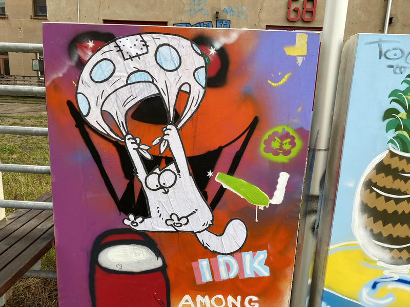 Ich habe die Figur Fontomas getauft. Dieses Paste-Up hängt unter der Eisenbahnbrücke auf dem Bischofsweg in Dresden. Mich begeistert immer wieder die Idee der Entwicklung der Figur in mehreren Stufen. Diese Art von Paste-Up in mehreren Etappe habe ich bisher nur einmal gesehen.