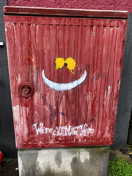In den Osterferien war ich in Düsseldorf mit einem Konzertabstecher nach Köln zu Besuch. Viel Zeit hatte ich nicht. Aber einige kleine und einige sehr große Streetart-Graffiti sind mir vor die Handy-Kamera gekommen. Auf dem Weg vom Hotel zum Bahnhof in Düsseldorf war ein kompletter Hausgiebel mit einem großen Streetart-Bild bemalt. Die Affenbande malte selbst einen großen Affen. Die Telekommunikationverteiler sind mit Schablonengraffiti besprüht und an einem Schild und einer Laterne war ein kleines Monster zu sehen.