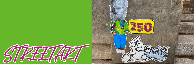Die Vielfalt der Paste-Up-Puppen kennt nahezu keine Grenzen. Und immer wieder tauchen neue Phantasiefiguren auf. Das wichtigste an den den Puppen ist sicherlich der Kopf. Hier sieht man z.B. Köpfe von Personen, wie eben Jesus, Achim Mentzel oder immer wieder Caspar David Friedrich. Dann gibt es Kopfe mit verschiedensten Puppen oder Stofftieren, wobei hier die Augen eine große und dominante Rolle spielen. Sie sind z.B. extrem vergrößert oder vervielfacht. Und zu guter Letzt gibt es die absoluten Phantasieköpfe, wie z.B. die Überwachungskamera oder auch die gute alte Tonbandkassette. Die Collagen sind immer wieder neu und überraschend. Hier die neuen Paste-Up-Puppen aus der Neustand und dem Hechtviertel von Dresden. (Anmerkung: Alle Aufnahmen sind schon vor der Sommerpause entstanden.)