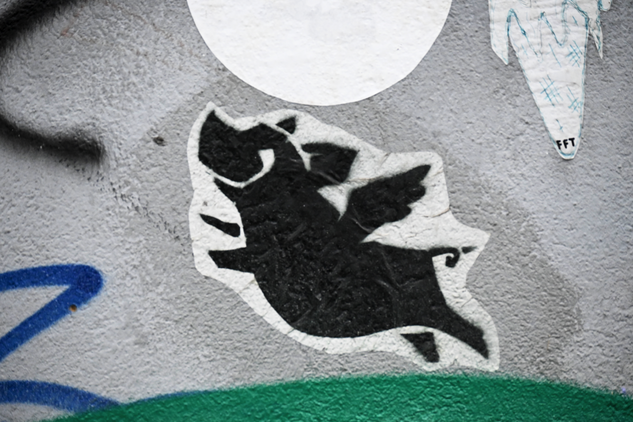 Noch ziemlich aktuell im Paste-Up-Update der „liebe” Onkel Trump als Heiliger mit allerlei beigepackten. Passend dazu stehen die beiden Cop‘s gleich in der Nähe. Alles zu finden im Hechtviertel kurz vor dem „Tor zur Hölle“ :)) (Insider-Witz).
