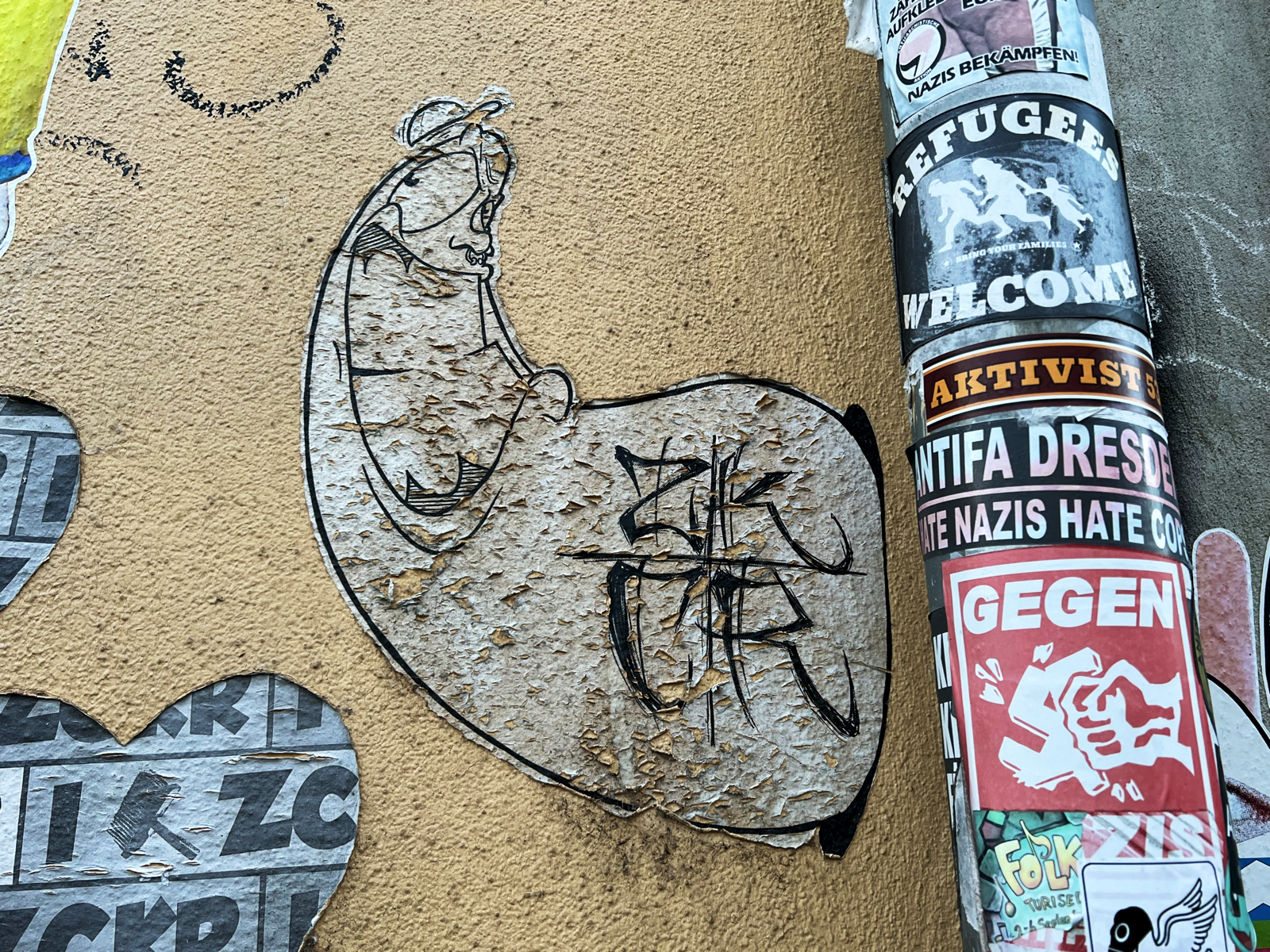 Es war mal wider Zeit für ein Paste-Up-Update aus der Neustadt und dem Hechtviertel. Da hat sich eine ganze Menge angesammelt. Ganz verschiedene Themen und Aussagen sind dabei. Auch ganz unterschiedliche Stile. Das ist eben ein richtiges Sammelsurium an Paste-Up-Graffiti: