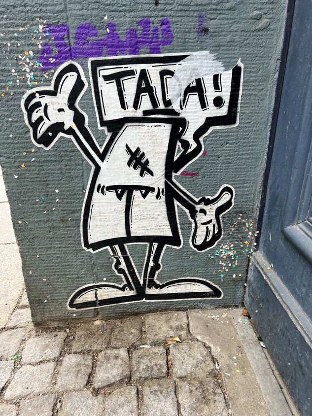 Ich liebe die verschiedenen Graffiti-Serien aus der Dresdner Neustadt und dem Hechtviertel wie die ACHSO-Katze und Simon‘s Cat. Aber die Neustadt ist eben noch viel graffiti-bunter. Und gerade die verschiedensten Paste-Up-Graffiti zeigen die Buntheit der Neustadt und des Hechtviertel auf eine grandiose Weise. Besondere Beispiele aus dieser Entdeckungsrunde sind das Gemälde mit dem Umweltgedanken, die beiden lustigen Figuren in blau und rot (Krake und Fuchs) und natürlich des „TADA”- Männlein. Es ist immer wieder so toll diese verschiedenen Formen und Stile von Paste-Up-Graffiti in der Dresdner-Neustadt zu entdecken.