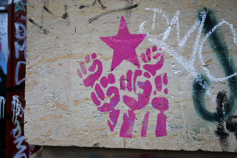 Neue Schablonengraffiti im Hecht-Viertel und der Neustand
