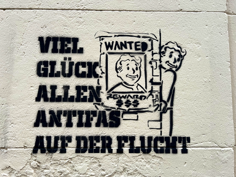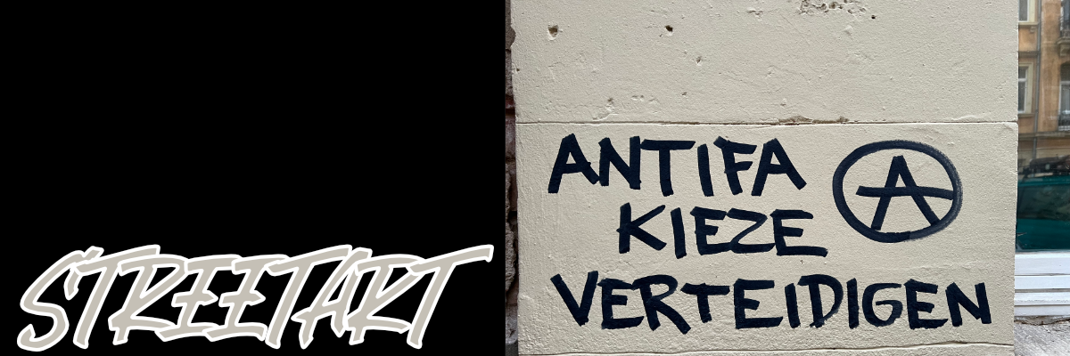 Die Rudolfstraße und Friedensstraße im Hechtviertel sind fest in der Hand der Antifa-Gemeinschaft. Dort prägen Graffiti und Streetart-Kunst mit politischen Inhalt in allen Facetten das Straßenbild von Hausfassaden und Mauern.