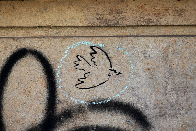 Bei meiner Suche nach der „Neuen Katze” durchstreifte ich im Februar und März immer wieder die Dresdner Stadtteile Neustand und Hecht. Dabei habe ich auch viele neue Schablonengraffiti an den Häuserfassaden entdeckt. Im Hecht-Viertel waren viele der Stencils politisch orientiert. Dort ist eine starke Antifa-Fraktion unterwegs. Das zeigen die vielen Antifa-Graffiti deutlich. In der Neustadt sind auch eher mal coole Schablonengraffiti, wie „Gib mir Five” oder die grazilen und leisen Graffiti zu sehen, wie die sehr schöne und zarte Friedenstaube.