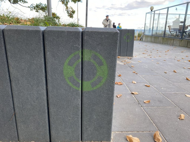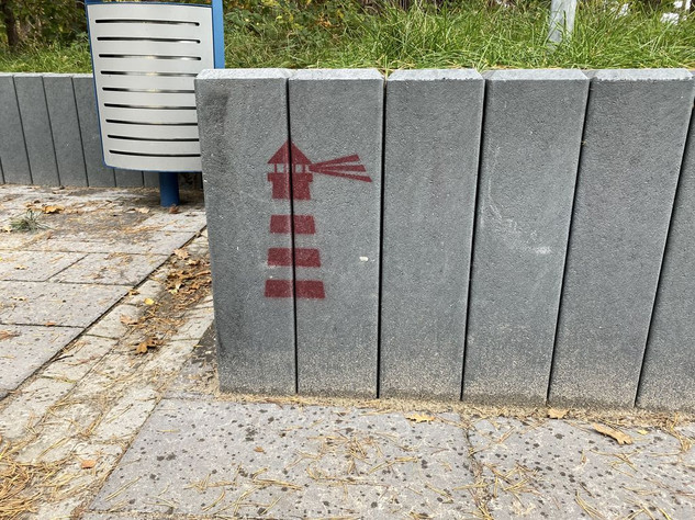 Hier sind die Pochoirs/Stencils aus Baabe auf Rügen von der Strandpromenade: