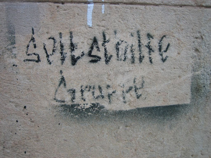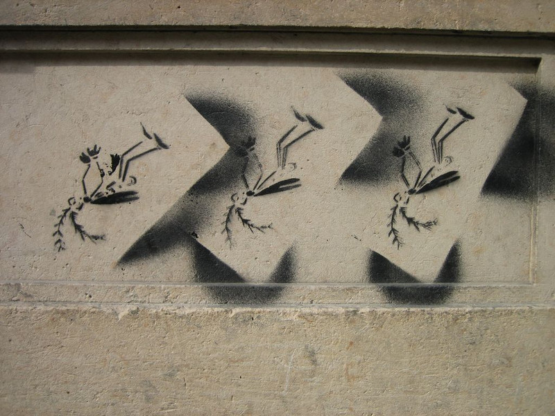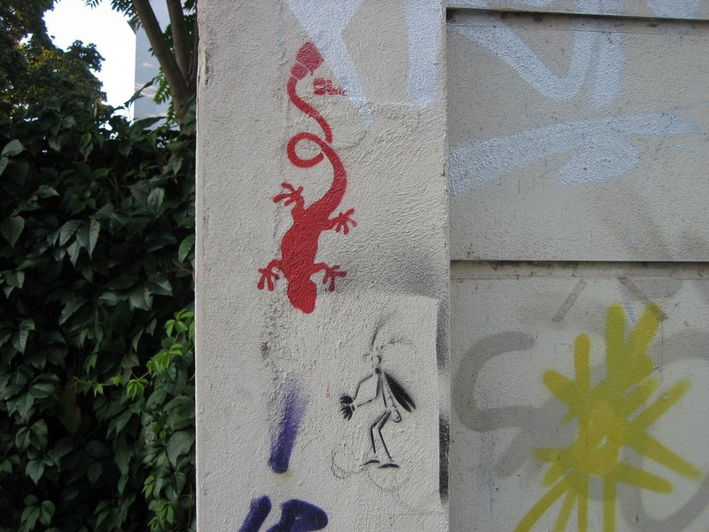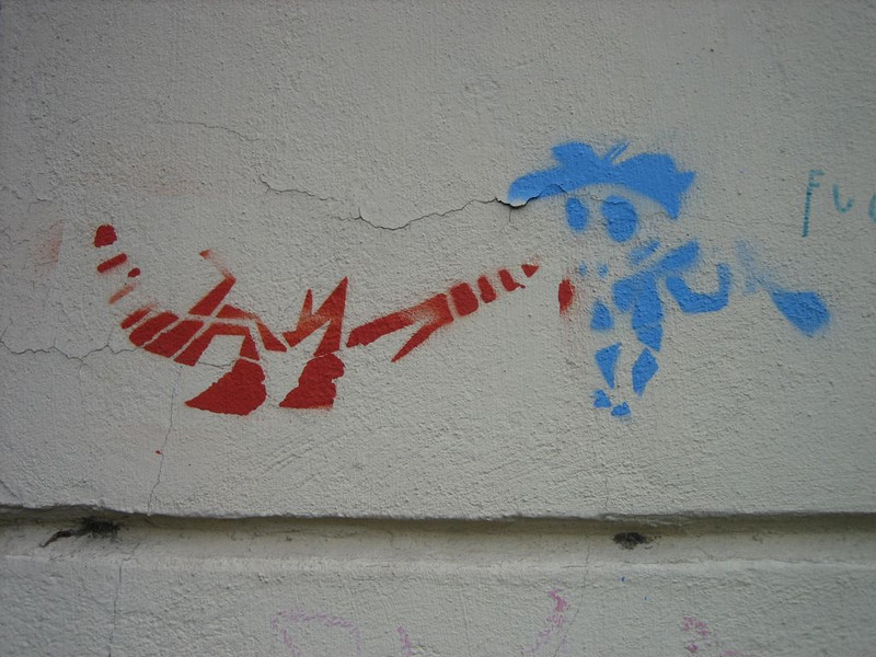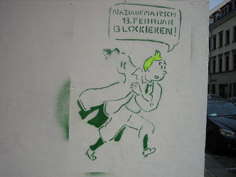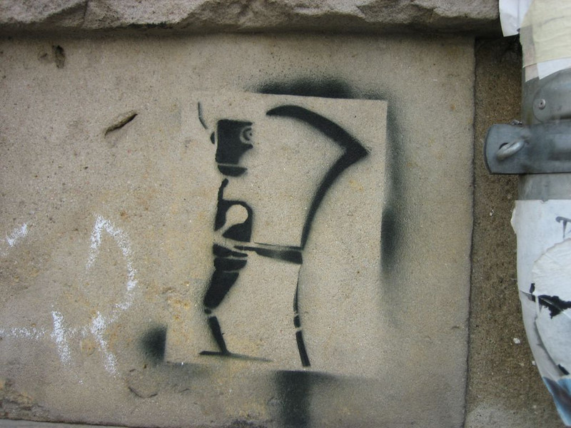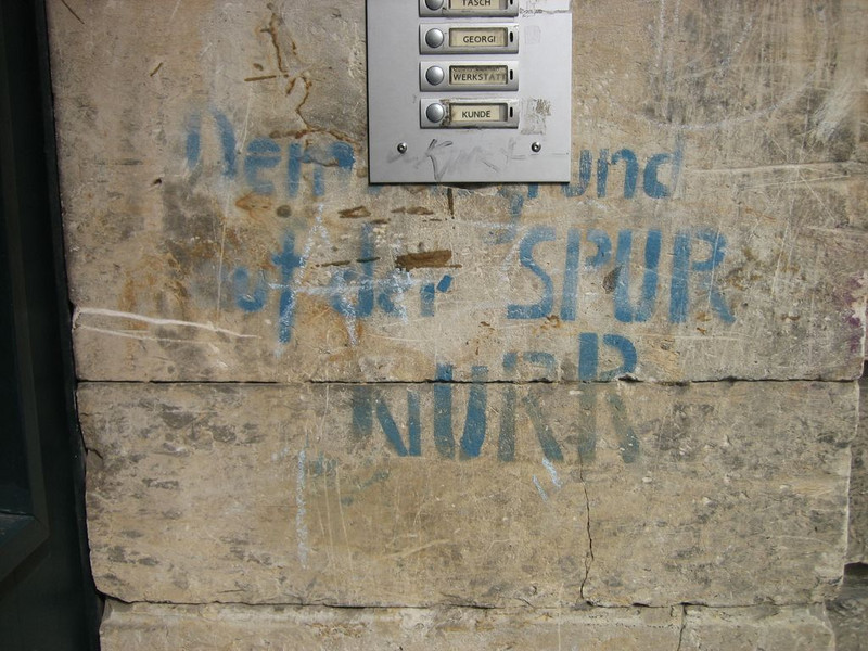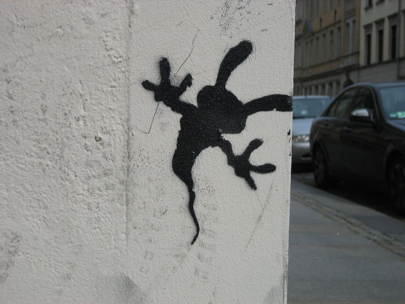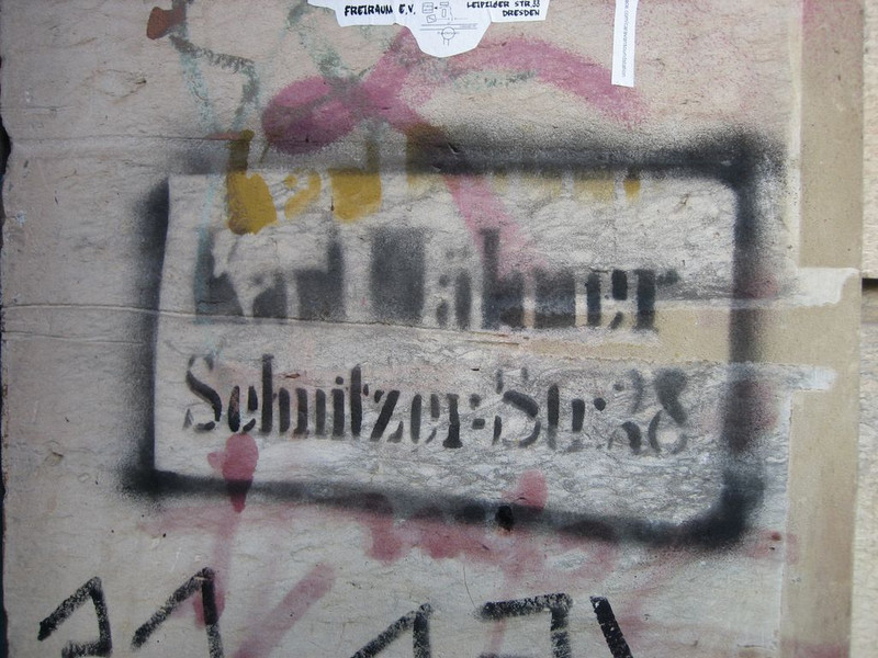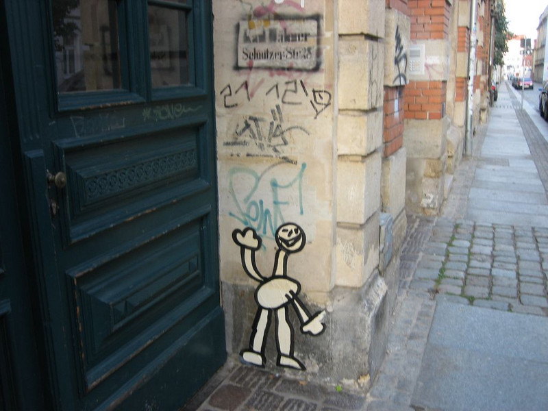 POCHOIRs – das Schulprojekt Teil 1. Im September 2009 war es dann soweit. Frau Aehrig (Kunstlehrerin an der Oberschule Weixdorf) und ich starteten das große Pochoir-Projekt an unserer Schule. Nach einer kurzen Einführung was Schablonengraffiti eigentlich sind und in die Geschichte der Pochoirs gingen Schülerteams aus ganz verschiedenen Klassenstufen auf große Exkursion in die Dresdner Neustadt. Dort suchten und dokumentierten sie alle Schablonengraffiti straßenweisen, die sie finden und identifizieren konnten. Dazu sollten alle Team erst das Straßenschild fotografieren. Bis auf ein Team ist das auch allen gelungen :)