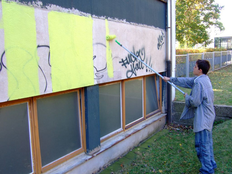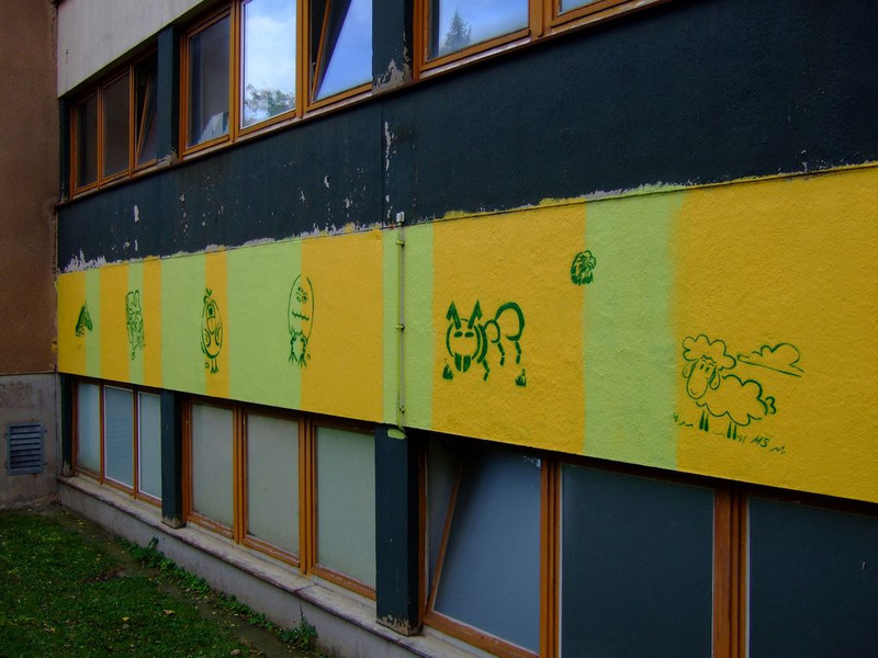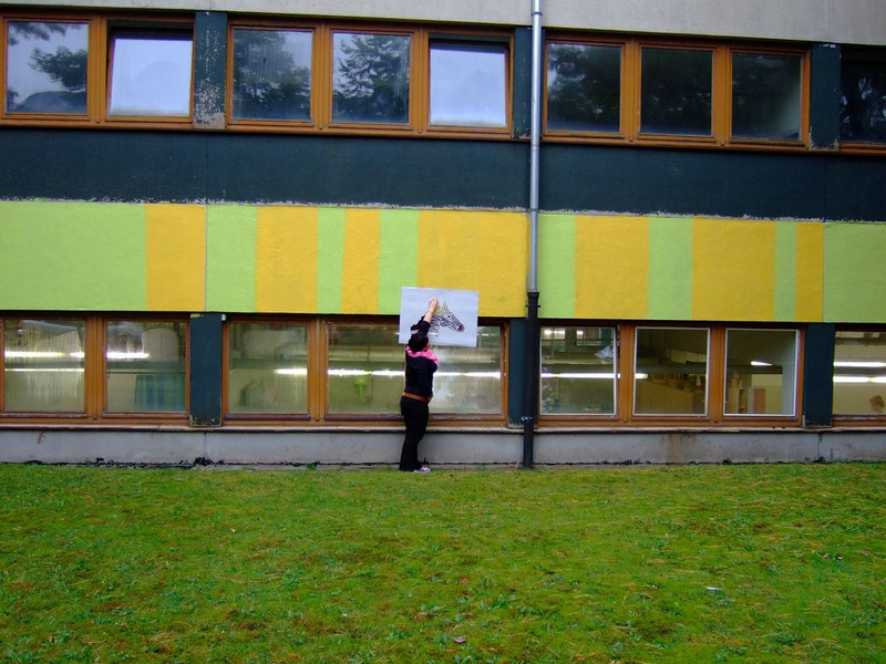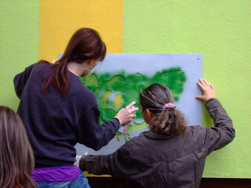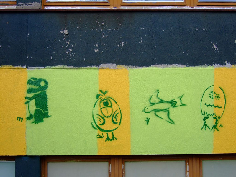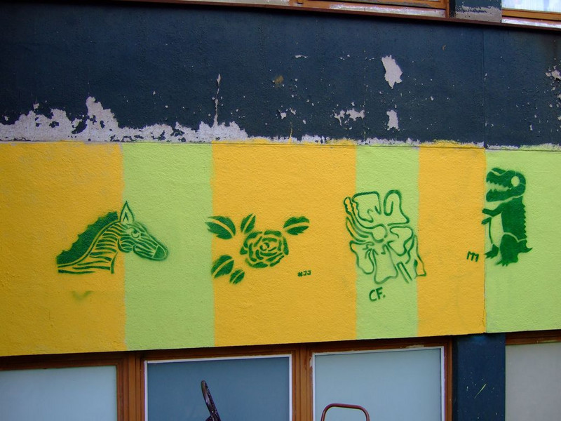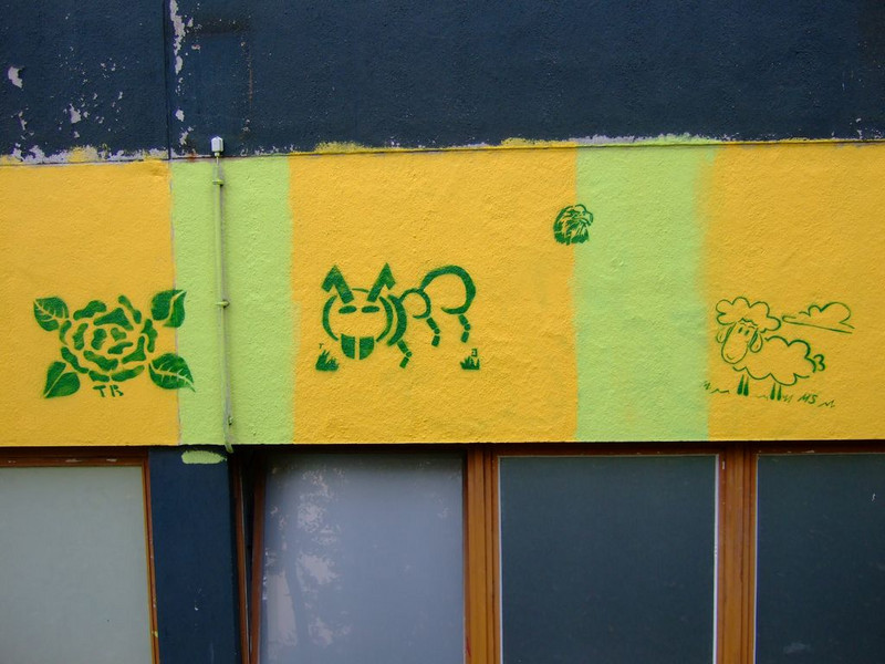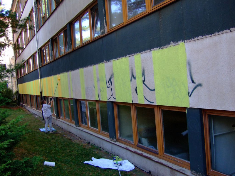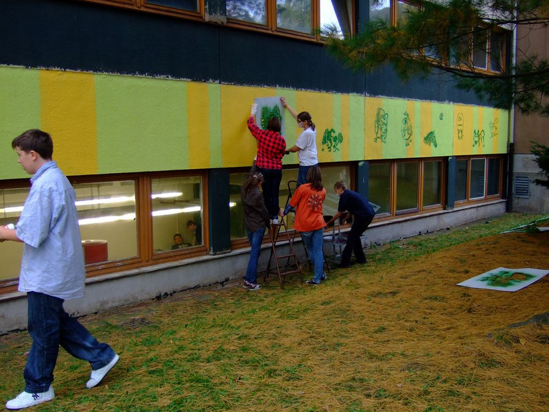 POCHOIRs – das Schulprojekt Teil 2. Wir hatten eine nicht so schöne alte Schule und eine Idee. Die Fassade der Schule sollte mit Schablonengraffiti neu gestaltet werden. Dazu waren natürlich mehrere Dinge zu erledigen. Wir brauchten die Genehmigung der Schulbehörde. Welch ein Wunder - haben wir bekommen!!! Die Fassade musste neu grundiert werden. Es mussten Entwürfe und daraus Schablonen entstehen. Und wir müssten die Pochoirs erfolgreich an die Wand bekommen. All diese Arbeiten sind in dieser Fotostrecke dokumentiert. Leider wurde die Schule inzwischen saniert und alle tollen Kunstwerke sind schon wieder Geschichte (deshalb auch die Genehmigung :)) ). Aber auf dieser Webseite leben sie noch ein bisschen weiter.