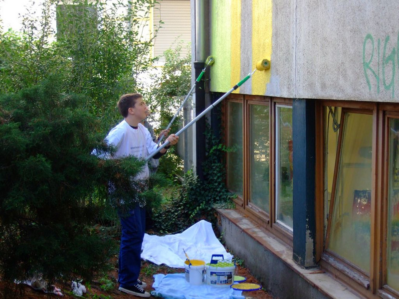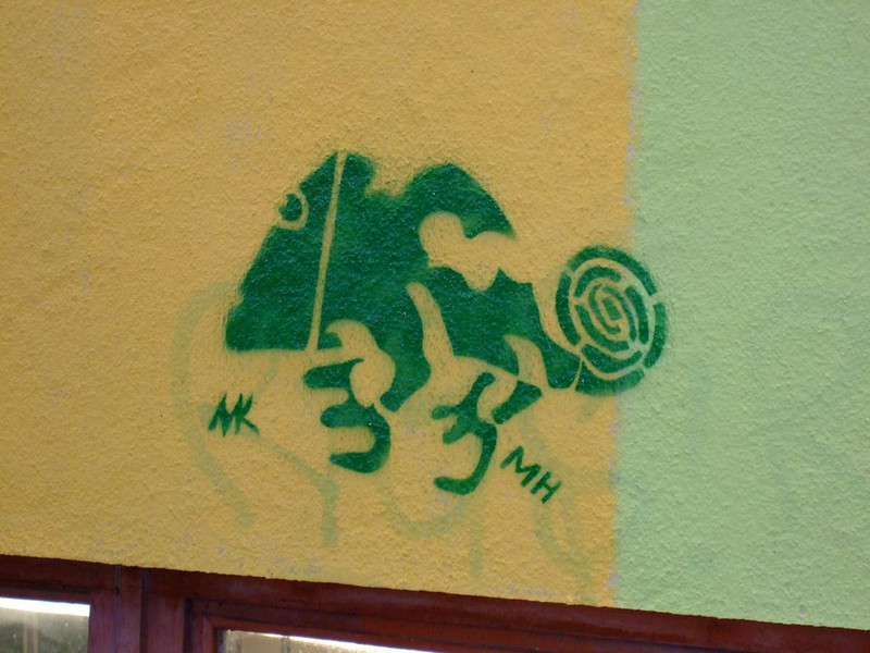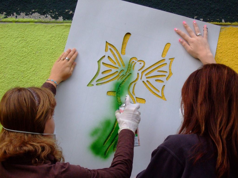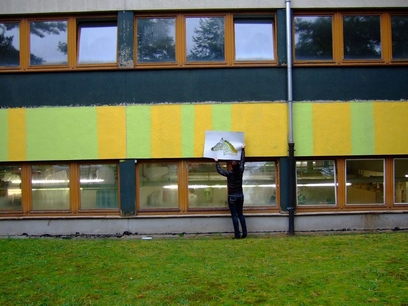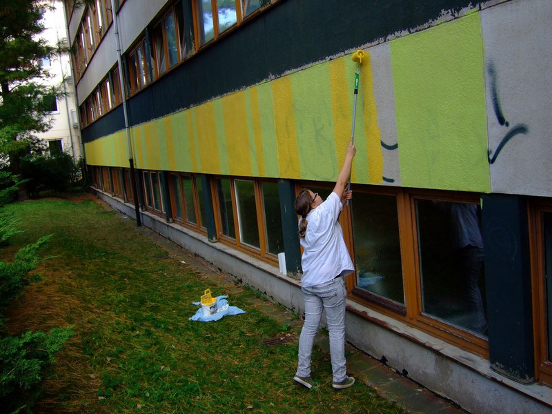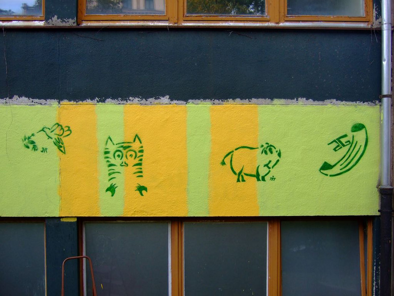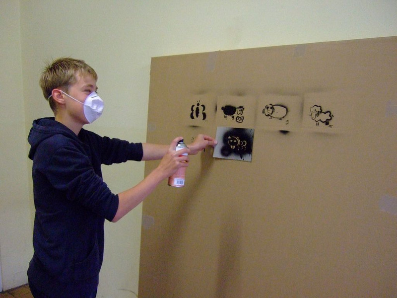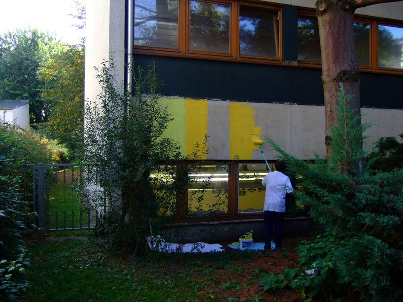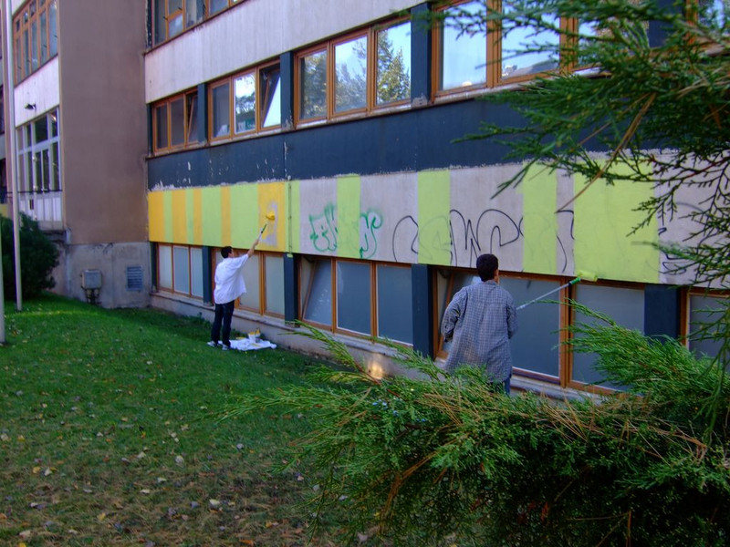POCHOIRs – das Schulprojekt Teil 2. Wir hatten eine nicht so schöne alte Schule und eine Idee. Die Fassade der Schule sollte mit Schablonengraffiti neu gestaltet werden. Dazu waren natürlich mehrere Dinge zu erledigen. Wir brauchten die Genehmigung der Schulbehörde. Welch ein Wunder - haben wir bekommen!!! Die Fassade musste neu grundiert werden. Es mussten Entwürfe und daraus Schablonen entstehen. Und wir müssten die Pochoirs erfolgreich an die Wand bekommen. All diese Arbeiten sind in dieser Fotostrecke dokumentiert. Leider wurde die Schule inzwischen saniert und alle tollen Kunstwerke sind schon wieder Geschichte (deshalb auch die Genehmigung :)) ). Aber auf dieser Webseite leben sie noch ein bisschen weiter.