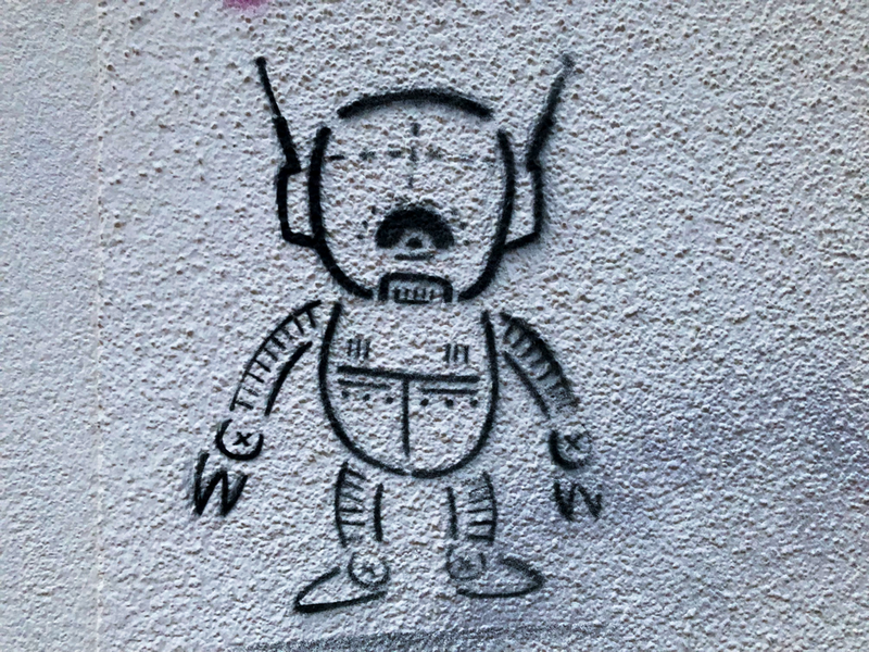 Hier die Dokumentation von Stencil-Graffiti (oder eben Pochoirs) vom August 2021 aus der Dresdner Neustadt.